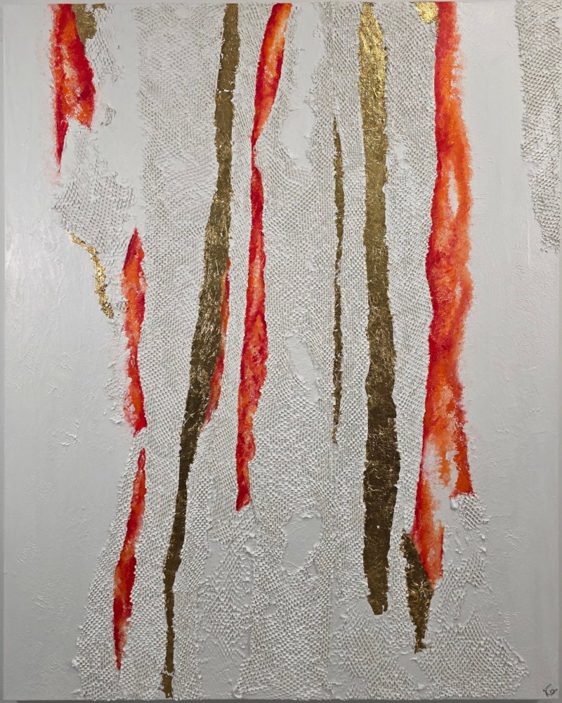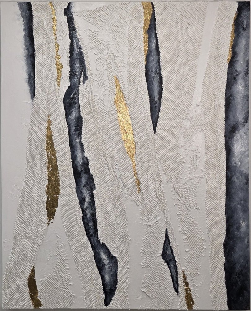 Acrylic on canvas, paper and gold leaf